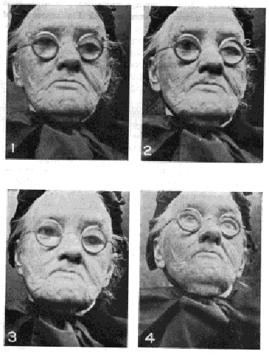 No. 1. - Man of thirty-six, 1902, wearing glasses for myopia. Note the appearance of effort in his eyes. He was relieved in 1904 by means of exercises in distant vision and obtained normal sight without glasses.