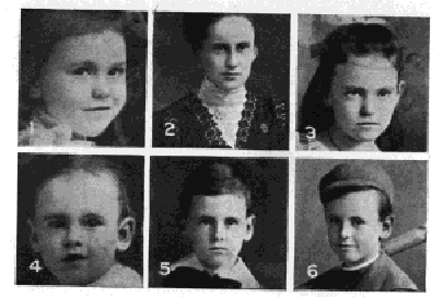 No. 1. - Girl of four with normal eyes. No. 2. - The child's mother with myopia. No. 3. - The same girl at nine with myopia. Note that her expression has completely changed, and is now exactly like her mother's. Nos. 4, 5 and 6. - The girl's brother at two, six and eight. His eyes are normal in all three pictures. The girl has either inherited her mother's disposition to take things hard, or has been injuriously effected by her personality of strain. The boy has escaped both influences. In view of the prevailing theories about the relation of heredity to myopia, this picture is particularly interesting.