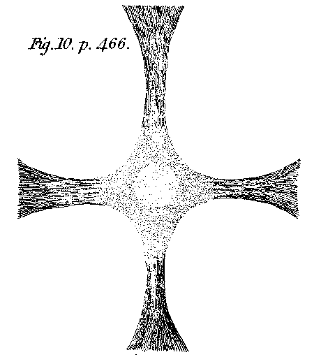 When we consider the situation of these muscles, it is evident that their action will produce 3 very different effects on the eye, according to circumstances. When they act separately, they will move the eye in different directions; when together, with only a small quantity of contraction, they will steady the eyeball; and when this is increased they will compress the lateral and posterior parts of the eye. This compression of the eye will force the aqueous humour forwards against the centre of the cornea, while the circumference is steadied by the muscles, so that the radius of curvature of the cornea will be rendered shorter, and its distance from the retina increased. That the eye-ball cannot be made to recede in the orbit by any of these actions, is sufficienly proved by its not having done so an any of the experiments. These muscles are uncommonly large, and come much more forward than appears necessary for the purposes generally assigned to them; but when applied to so important an office as that we have just stated, their size, and anterior insertion, are easily explained.
